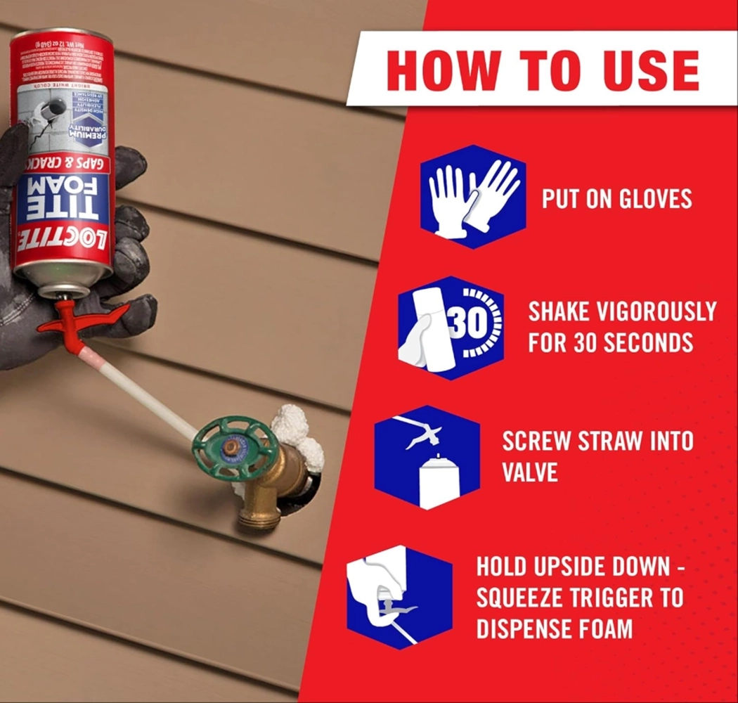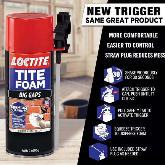 Loctite Tite Foam Gaps & Cracks is a durable expanding polyurethane sealant that fills and insulates gaps and cracks. It creates a strong, weather-resistant bond that helps block drafts, moisture, and pests while improving energy efficiency. Easy to apply with precision, it’s ideal for sealing around windows, doors, pipes, and other small openings in your home or workspace.
